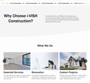 I Vish Construction is a custom-built Squarespace website crafted to showcase the company’s construction services, project expertise, and client-focused solutions. Designed with clarity and professionalism, the site features well-structured service sections and project highlights that guide visitors through offerings such as residential builds, renovations, and commercial construction.